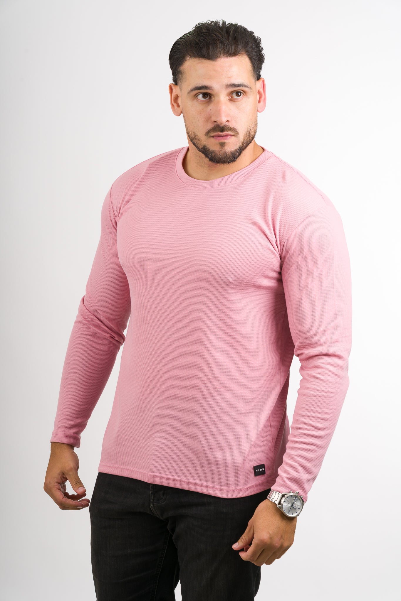 Camiseta cuello redondo / manga larga de textura.