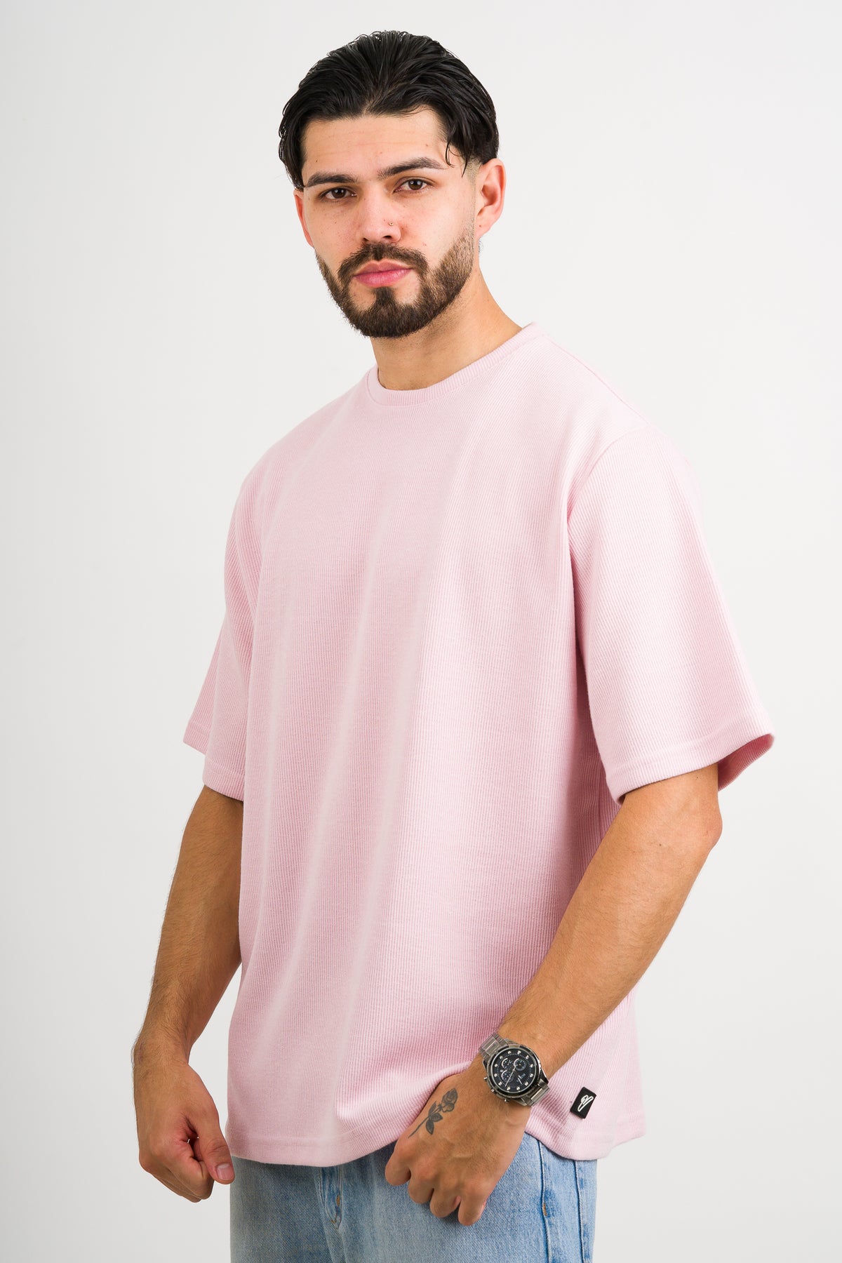 Nuevo corte en camiseta oversize, más ancho, más largo de mangas.
